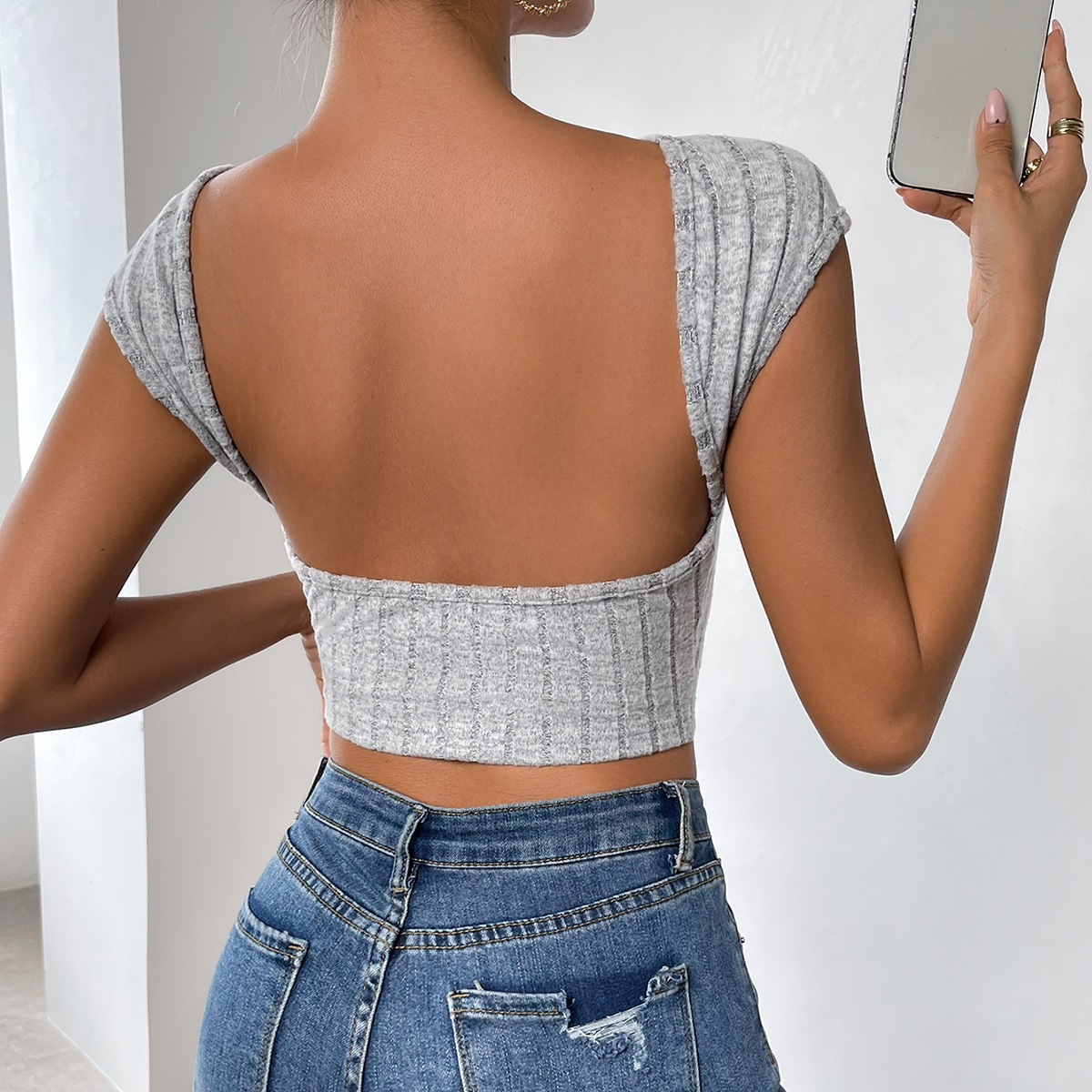 Be the first to review “Women’s Hot Sexy Slim Backless Sexy Short Knitted Top”